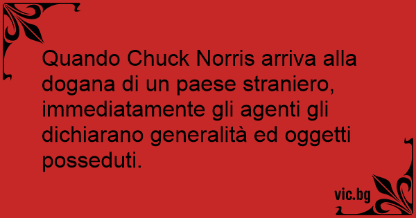 Quando Chuck Norris arriva alla dogana di un paese straniero, immediatamente gli agenti gli dichiarano generalità ed oggetti posseduti.