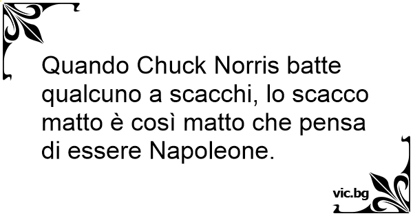 Quando Chuck Norris batte qualcuno a scacchi, lo scacco matto è così matto che pensa di essere Napoleone.