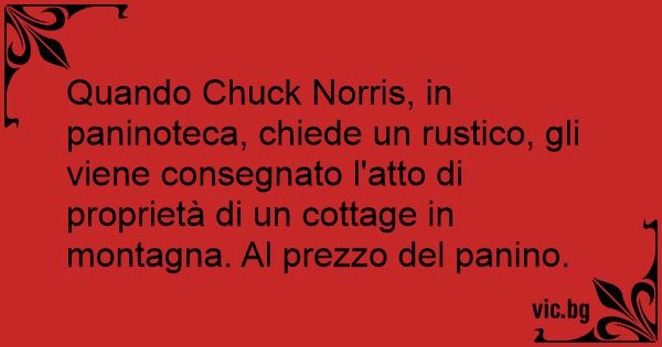 Quando Chuck Norris, in paninoteca, chiede un rustico, gli viene consegnato l'atto di proprietà di un cottage in montagna. Al prezzo del panino.