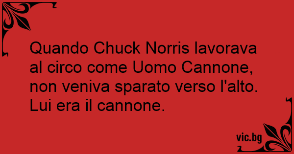 Quando Chuck Norris lavorava al circo come Uomo Cannone, non veniva sparato verso l'alto. Lui era il cannone.