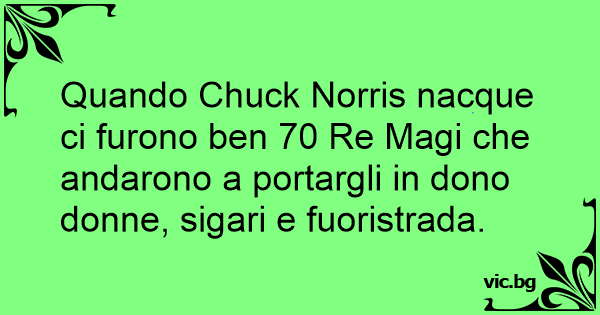 Quando Chuck Norris nacque ci furono ben 70 Re Magi che andarono a portargli in dono donne, sigari e fuoristrada.