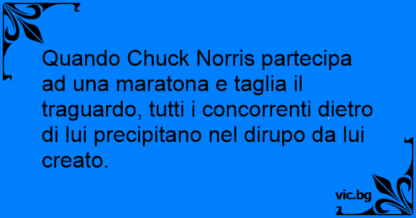 Quando Chuck Norris partecipa ad una maratona e taglia il traguardo, tutti i concorrenti dietro di lui precipitano nel dirupo da lui creato.
