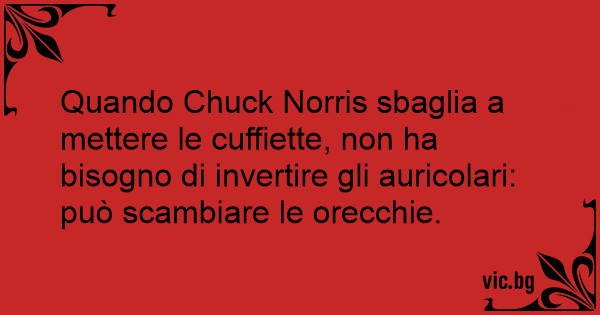 Quando Chuck Norris sbaglia a mettere le cuffiette, non ha bisogno di invertire gli auricolari: può scambiare le orecchie.