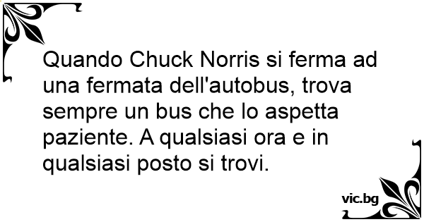 Quando Chuck Norris si ferma ad una fermata dell'autobus, trova sempre un bus che lo aspetta paziente. A qualsiasi ora e in qualsiasi posto si trovi.