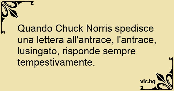 Quando Chuck Norris spedisce una lettera all'antrace, l'antrace, lusingato, risponde sempre tempestivamente.