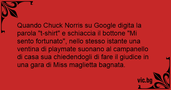 Quando Chuck Norris su Google digita la parola "t-shirt" e schiaccia il bottone "Mi sento fortunato", nello stesso istante una ventina di playmate suonano al campanello di casa sua chiedendogli di fare il giudice in una gara di Miss maglietta bagnata.