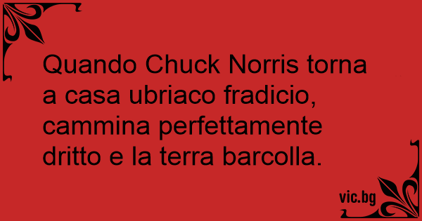 Quando Chuck Norris torna a casa ubriaco fradicio, cammina perfettamente dritto e la terra barcolla.
