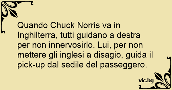 Quando Chuck Norris va in Inghilterra, tutti guidano a destra per non innervosirlo. Lui, per non mettere gli inglesi a disagio, guida il pick-up dal sedile del passeggero.