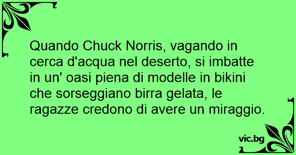 Quando Chuck Norris, vagando in cerca d'acqua nel deserto, si imbatte in un' oasi piena di modelle in bikini che sorseggiano birra gelata, le ragazze credono di avere un miraggio.
