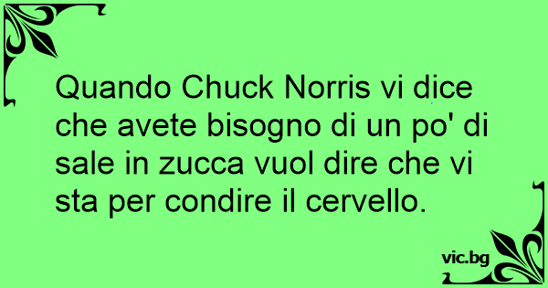 Quando Chuck Norris vi dice che avete bisogno di un po' di sale in zucca vuol dire che vi sta per condire il cervello.
