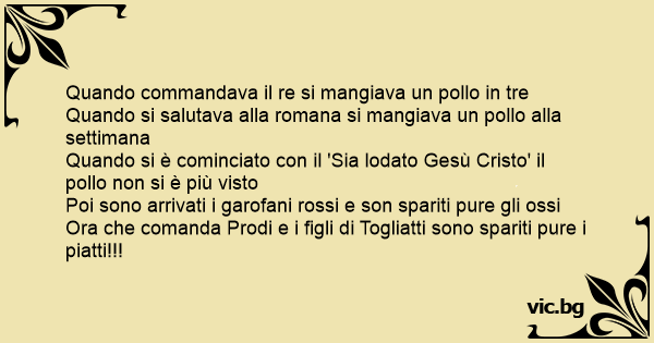 Ora che comanda Prodi e i figli di Togliatti sono spariti pure i piatti!!!