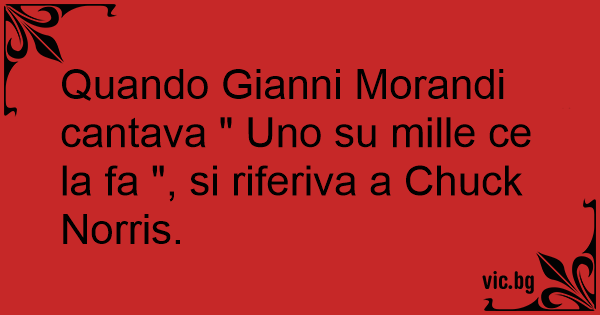 Quando Gianni Morandi cantava " Uno su mille ce la fa ", si riferiva a Chuck Norris.