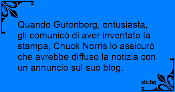 Quando Gutenberg, entusiasta, gli comunicò di aver inventato la stampa, Chuck Norris lo assicurò che avrebbe diffuso la notizia соn un annuncio sul suo blog.
