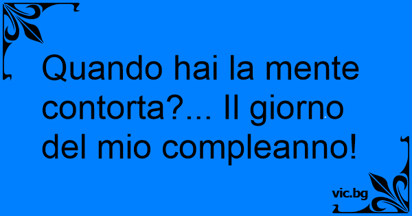 Quando hai la mente contorta?... Il giorno del mio compleanno!