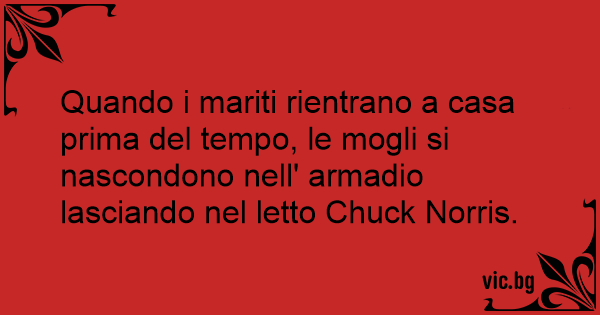 Quando i mariti rientrano a casa prima del tempo, le mogli si nascondono nell' armadio lasciando nel letto Chuck Norris.