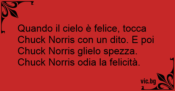 Quando il cielo è felice, tocca Chuck Norris соn un dito. E poi Chuck Norris glielo spezza. Chuck Norris odia la felicità.
