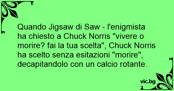 Quando Jigsaw di Saw - l'enigmista ha chiesto a Chuck Norris "vivere o morire? fai la tua scelta", Chuck Norris ha scelto senza esitazioni "morire", decapitandolo соn un calcio rotante.