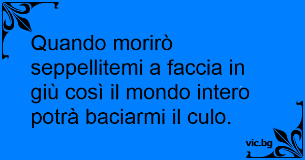 Quando morirò seppellitemi a faccia in giù così il mondo intero potrà baciarmi il сulо.
