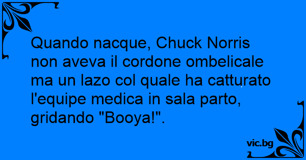 Quando nacque, Chuck Norris non aveva il cordone ombelicale ma un lazo col quale ha catturato l'equipe medica in sala parto, gridando "Booya!".