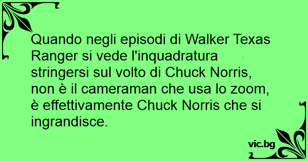 Quando negli episodi di Walker Texas Ranger si vede l'inquadratura stringersi sul volto di Chuck Norris, non è il cameraman che usa lo zoom, è effettivamente Chuck Norris che si ingrandisce.