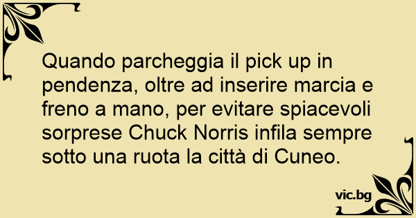 Quando parcheggia il pick up in pendenza, oltre ad inserire marcia e freno a mano, per evitare spiacevoli sorprese Chuck Norris infila sempre sotto una ruota la città di Cuneo.