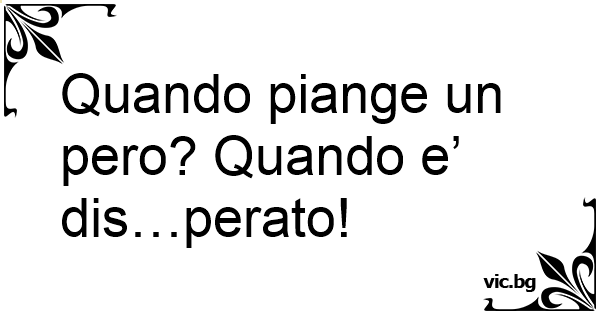 Quando piange un pero? Quando e’ dis…perato!