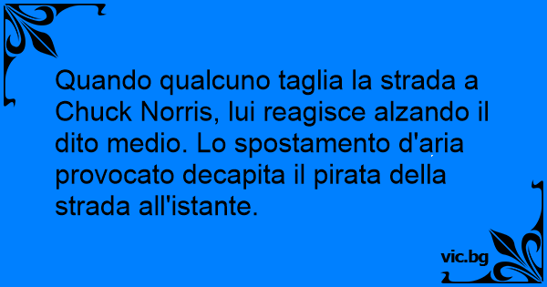 Quando qualcuno taglia la strada a Chuck Norris, lui reagisce alzando il dito medio. Lo spostamento d'aria provocato decapita il pirata della strada all'istante.