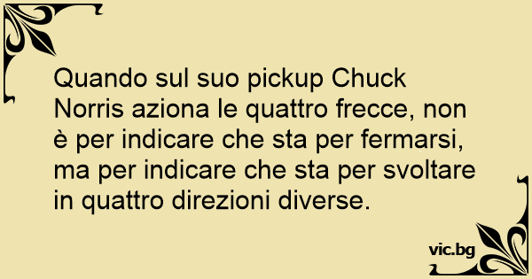 Quando sul suo pickup Chuck Norris aziona le quattro frecce, non è per indicare che sta per fermarsi, ma per indicare che sta per svoltare in quattro direzioni diverse.