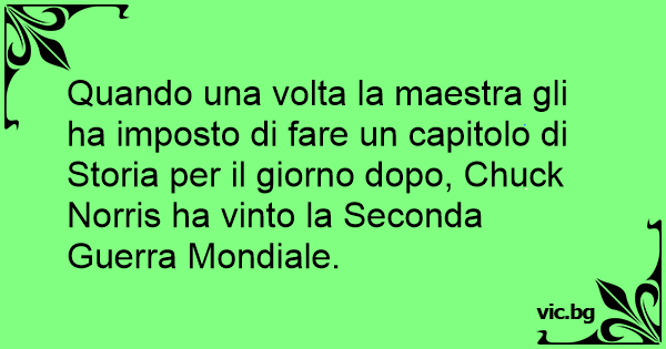 Quando una volta la maestra gli ha imposto di fare un capitolo di Storia per il giorno dopo, Chuck Norris ha vinto la Seconda Guerra Mondiale.