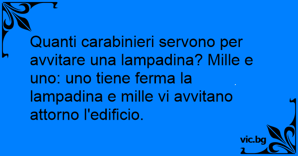 Quanti carabinieri servono per avvitare una lampadina? Mille e uno: uno tiene ferma la lampadina e mille vi avvitano attorno l'edificio.