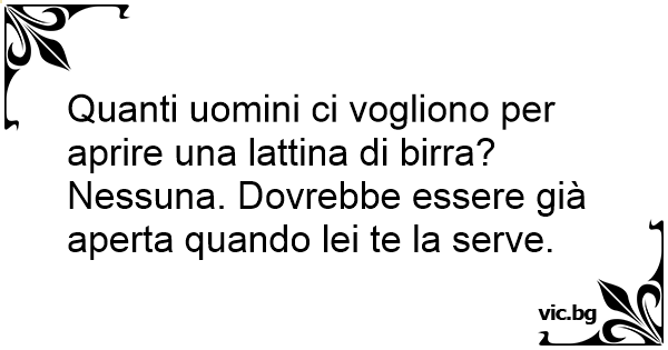 Quanti uomini ci vogliono per aprire una lattina di birra? Nessuna. Dovrebbe essere già aperta quando lei te la serve.