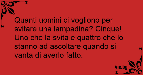Quanti uomini ci vogliono per svitare una lampadina? Cinque! Uno che la svita e quattro che lo stanno ad ascoltare quando si vanta di averlo fatto.