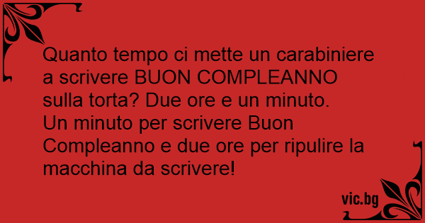 Quanto tempo ci mette un carabiniere a scrivere BUON COMPLEANNO sulla torta? Due ore e un minuto.