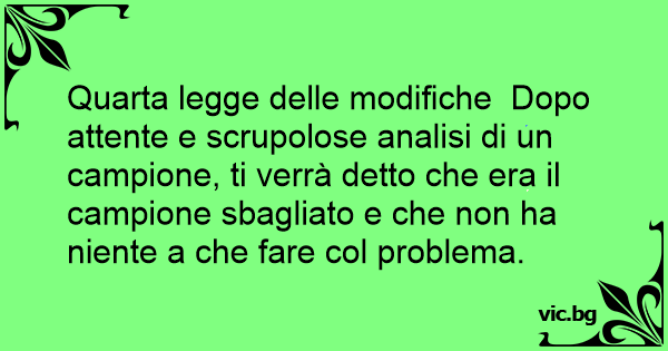 Quarta legge delle modifiche Dopo attente e scrupolose analisi di un campione, ti verrà detto che era il campione sbagliato e che non ha niente a che fare col problema.