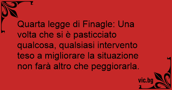 Quarta legge di Finagle: Una volta che si è pasticciato qualcosa, qualsiasi intervento teso a migliorare la situazione non farà altro che peggiorarla.