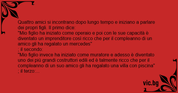 .. Vedendo che il quarto amico se ne rimaneva zitto gli altri iniziano a chieder di suo figlio allora rispose: