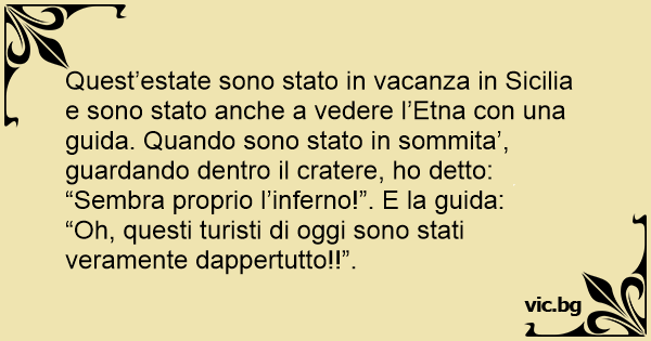 Quest’estate sono stato in vacanza in Sicilia e sono stato anche a vedere l’Etna соn una guida. Quando sono stato in sommita’, guardando dentro il cratere, hо detto: