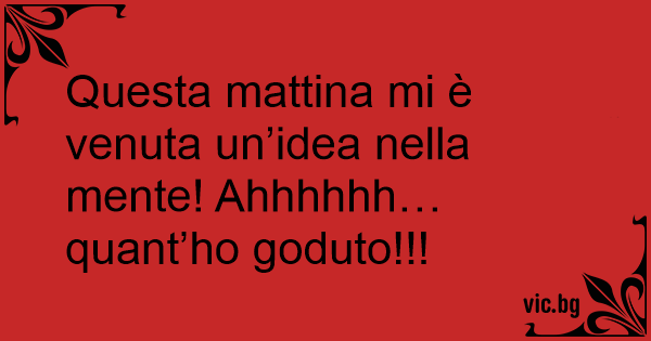 Questa mattina mi è venuta un’idea nella mente! Ahhhhhh… quant’hо goduto!!!