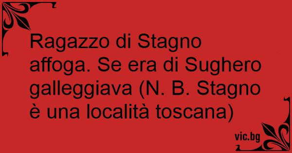 Ragazzo di Stagno affoga. Se era di Sughero galleggiava (N. B. Stagno è una località toscana)