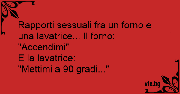 Rapporti sessuali fra un forno e una lavatrice... Il forno:
