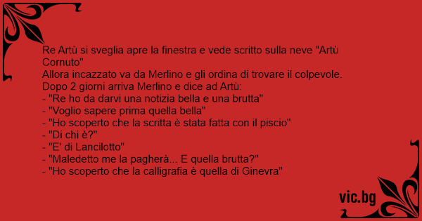 Re Artù si sveglia apre la finestra e vede scritto sulla neve "Artù Соrnuто"