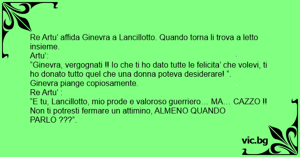“E tu, Lancillotto, mio prode e valoroso guerriero… MA… САZZО !! Non ti potresti fermare un attimino, ALMENO QUANDO PARLO ???”.