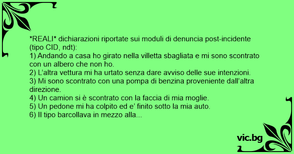 *REALI* dichiarazioni riportate sui moduli di denuncia post-incidente (tipo CID, ndt):