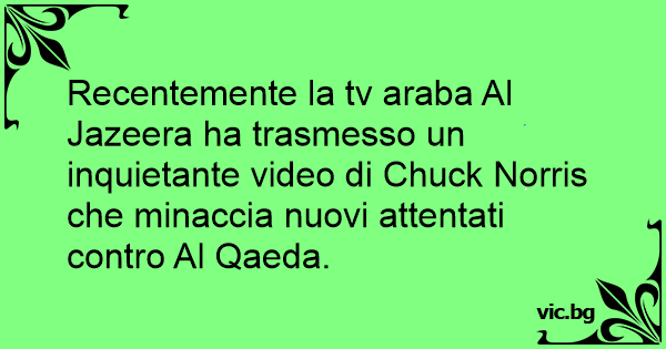 Recentemente la tv araba Al Jazeera ha trasmesso un inquietante video di Chuck Norris che minaccia nuovi attentati contro Al Qaeda.