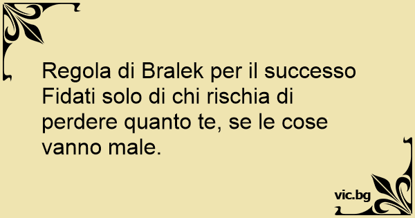 Fidati solo di chi rischia di perdere quanto te, se le cose vanno male.