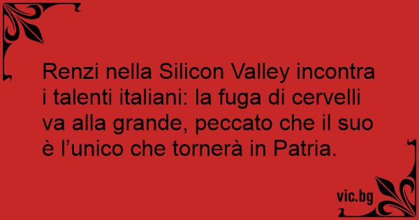 Renzi nella Silicon Valley incontra i talenti italiani: la fuga di cervelli va alla grande, peccato che il suo è l’unico che tornerà in Patria.