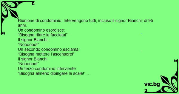 Riunione di condominio. Intervengono tutti, incluso il signor Bianchi, di 95 anni.