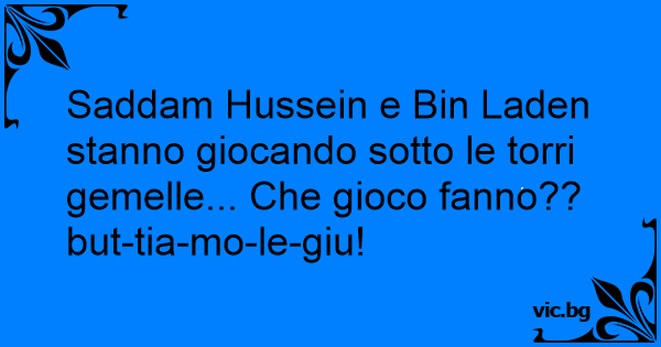 Saddam Hussein e Bin Laden stanno giocando sotto le torri gemelle... Che gioco fanno?? but-tia-mo-le-giu!