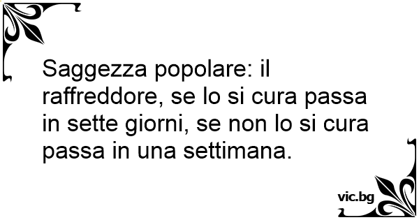 Saggezza popolare: il raffreddore, se lo si cura passa in sette giorni, se non lo si cura passa in una settimana.