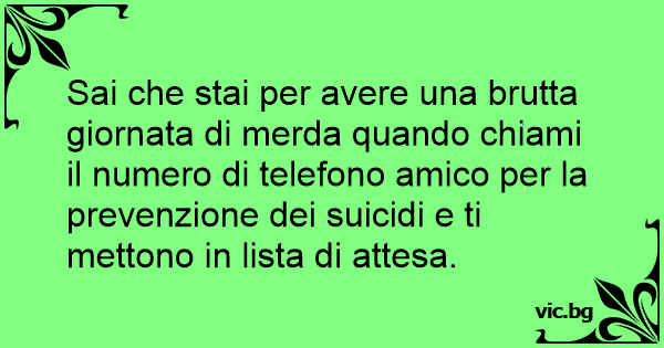 Sai che stai per avere una brutta giornata di меrdа quando chiami il numero di telefono amico per la prevenzione dei suicidi e ti mettono in lista di attesa.